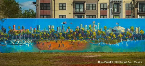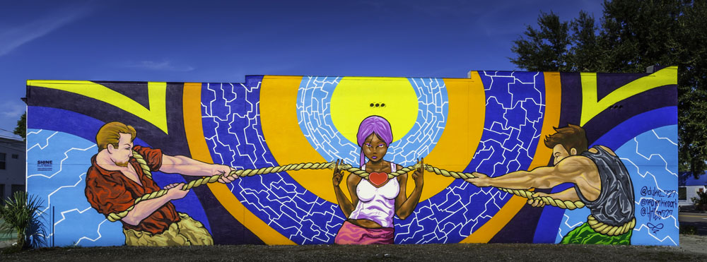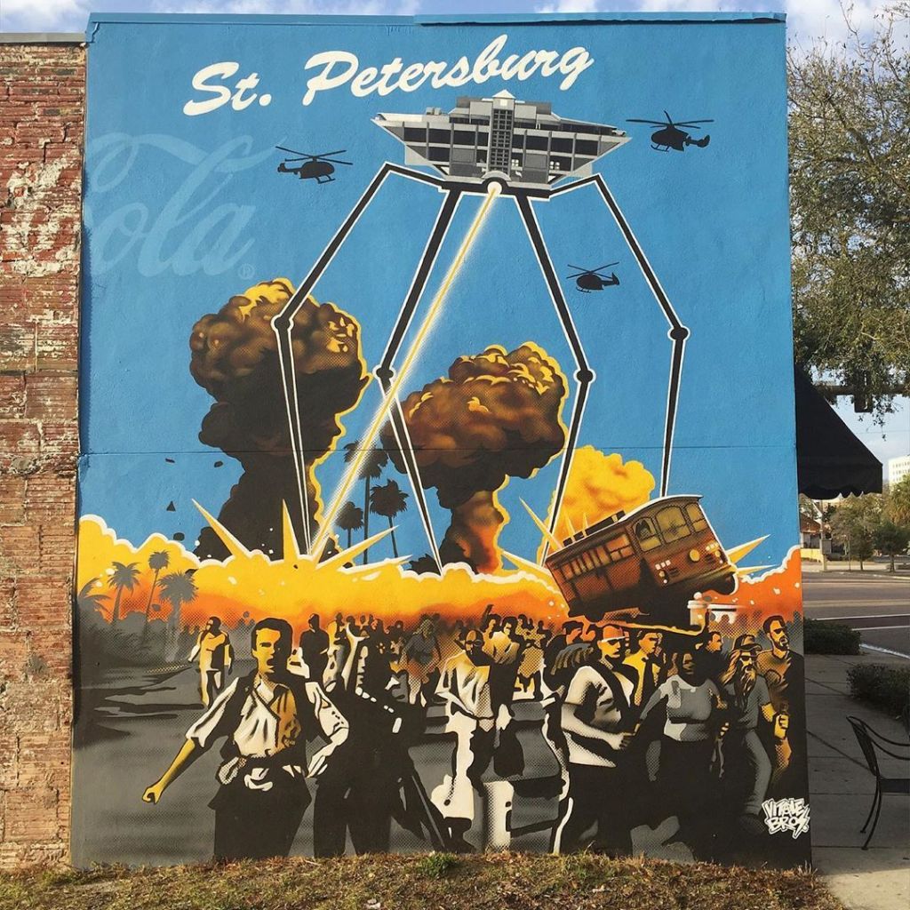 Created in 2016 as part of the SHINE St. Petersburg Mural Festival by Reid Jenkins and Ink Werx Crew, it was hidden from view by building construction in 2018.
